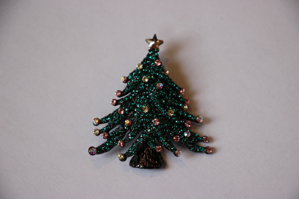 Karácsonyfa bross színes cirkónia kristályokkal (0098.)