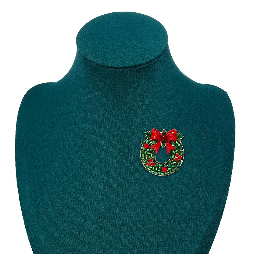 Karácsonyi koszorú bross arany bevonattal, cirkónia kristályokkal (0158.)